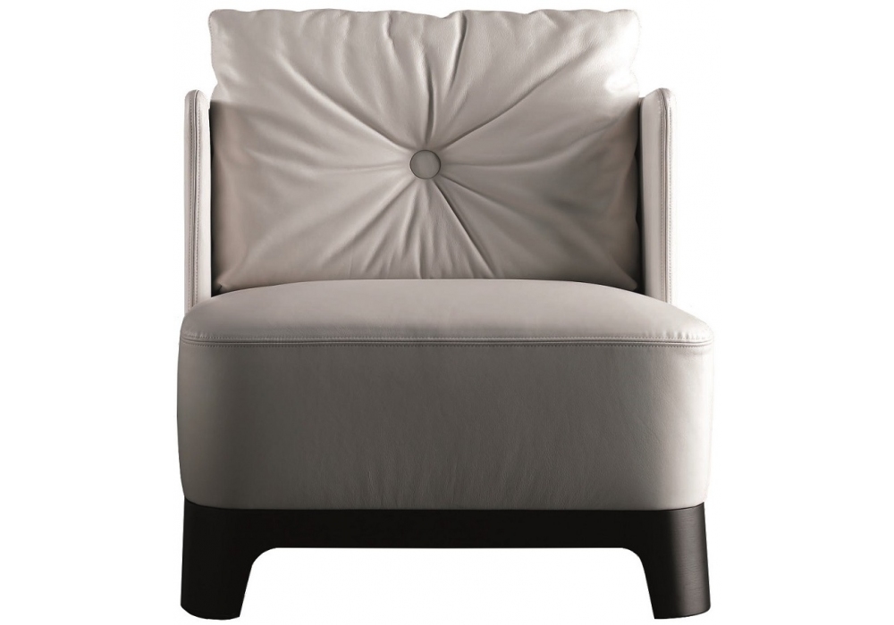 Keeton, von Andrea Parisio für Meridiani entworfen, ist ein kleiner Sessel mit Sockel aus Eiche gebeizt. Bezug in Leder oder Stoff erhältlich.
