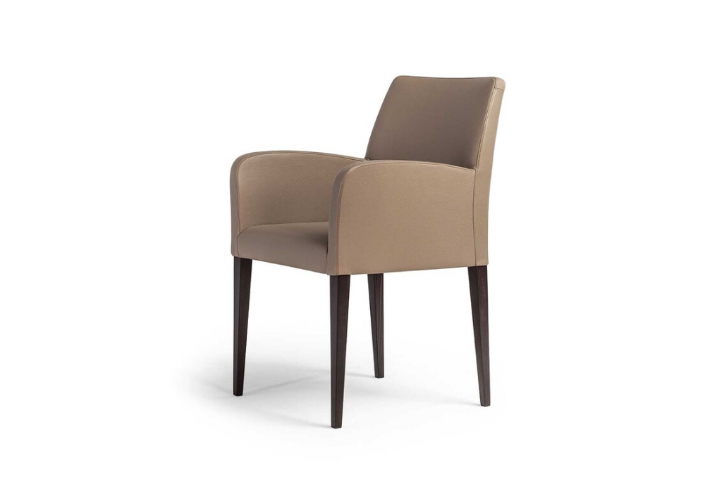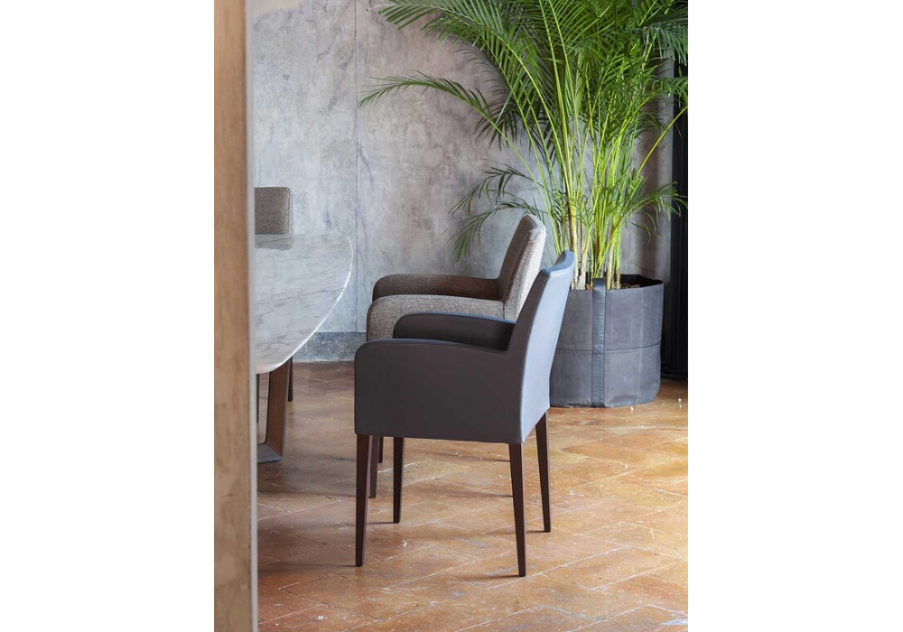 Liz von Poltrona Frau entworfen, ist ein Sessel mit Beinen aus massivem Eschenholz und einer Polsterung aus Stoff oder Leder.