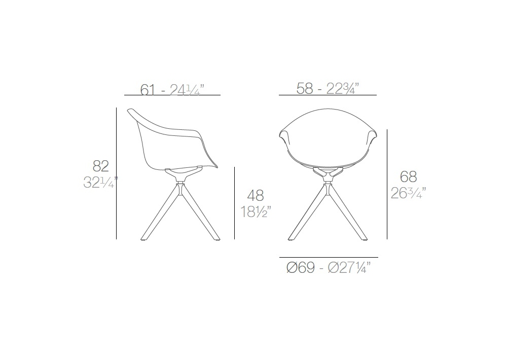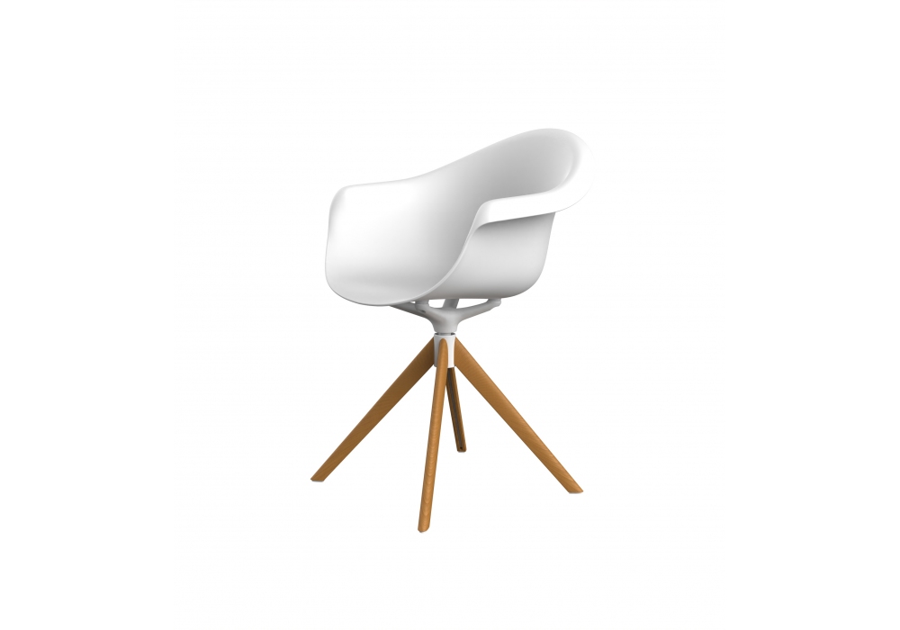 Incasso von Archirivolto für Vondom entworfen, ist ein Drehsessel mit Holzbeinen mit Sitz aus Polypropylen oder durchscheinendem Polycarbonat. Verfügbar in mehreren Ausführungen.