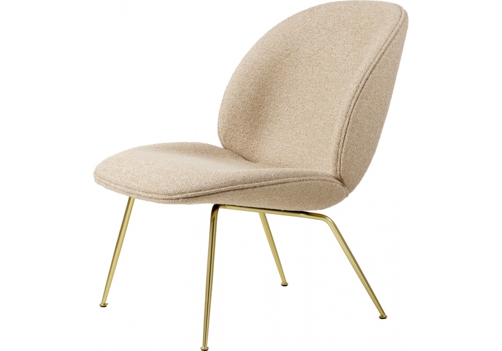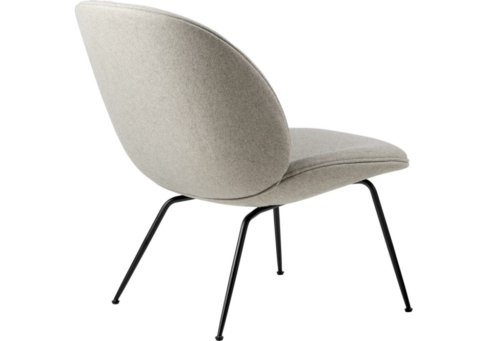 Beetle von GamFratesi für Gubi entworfen, ist ein Armstuhl, der aus einer mit Polyurethan gepolsterten Sperrholzschale und Metallbeinen besteht. Er ist mit Stoff- oder Lederbezug erhältlich.