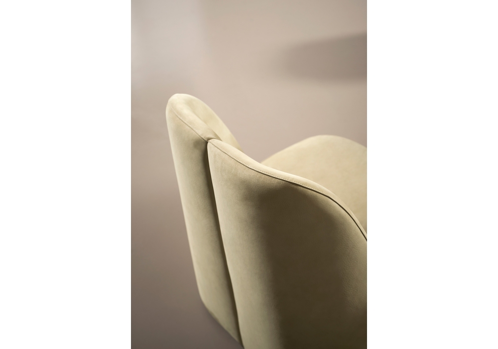Keren von Christophe Delcourt für Baxter entworfen, ist ein kleiner Sessel mit chilenischem Kiefernsperrholzrahmen. Füllung aus Polyurethanschaum unterschiedlicher Dichte mit Acrylfaserbezug. Nur in weichem Leder verfügbar.