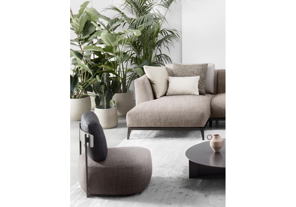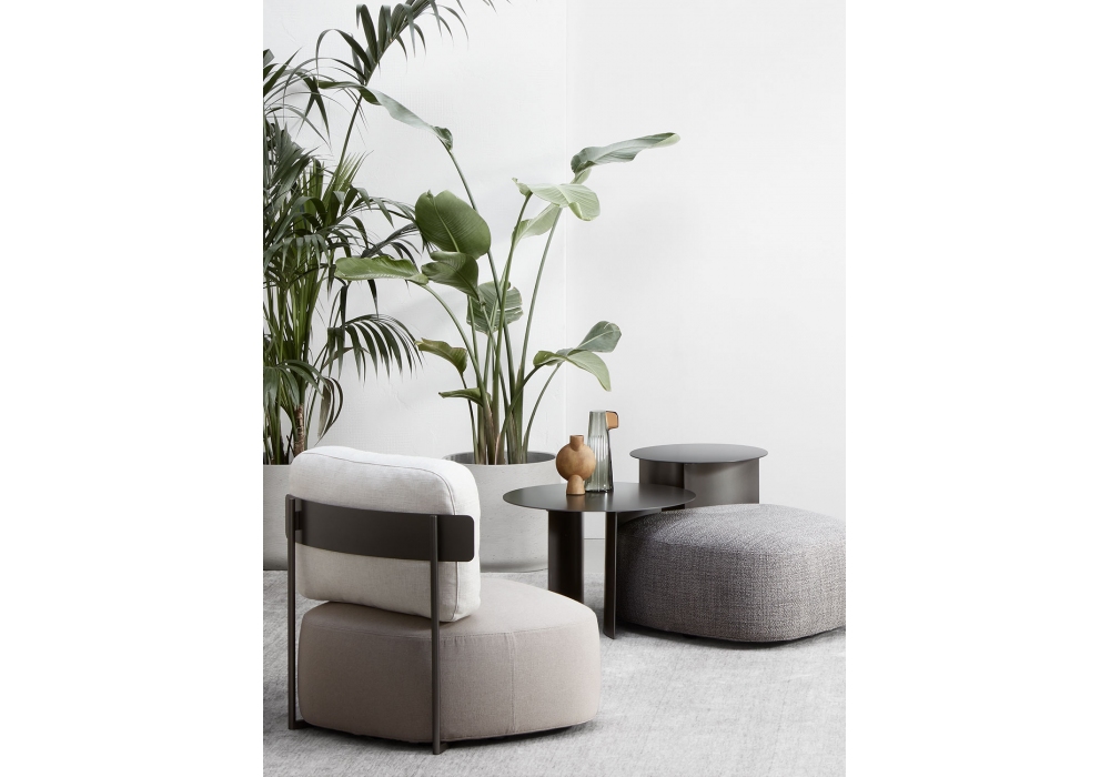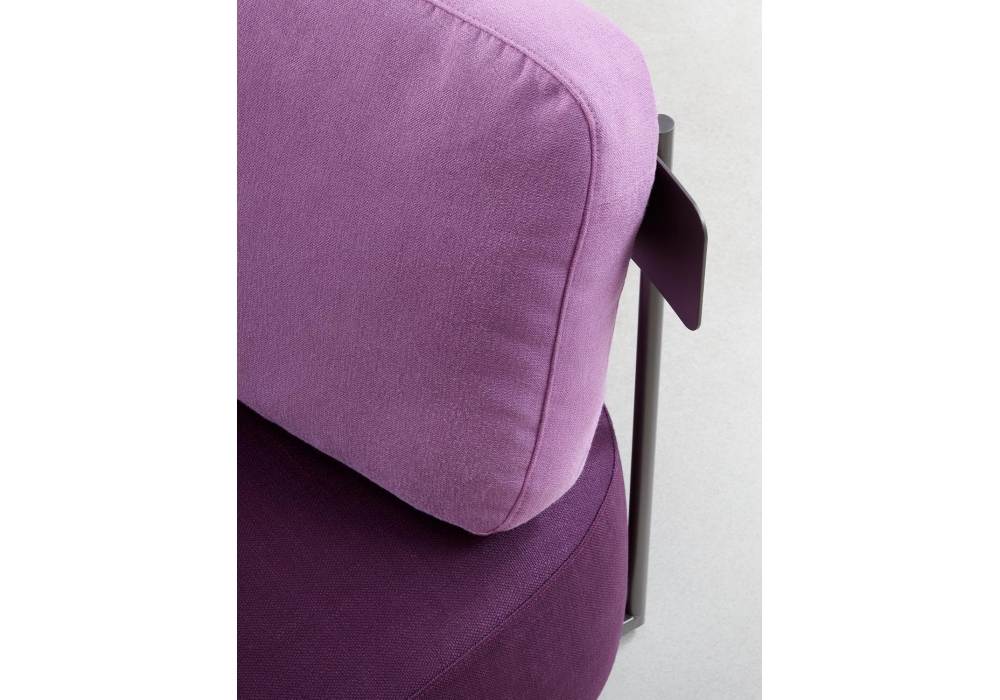 Pierre von Studio Contromano für Flou entworfen, ist ein kleiner Sessel mit Rückenlehne aus Metallrohr in anodic bronze, matt brüniert, Oxide, Schwarz, Greige, Weiß, Magma und Ozeanfarben. Gepolsterter Sitz mit abnehmbarem Bezug aus Stoff oder Leder. Erhältlich in zwei Größen.