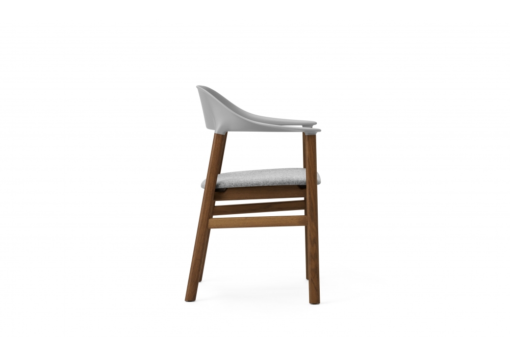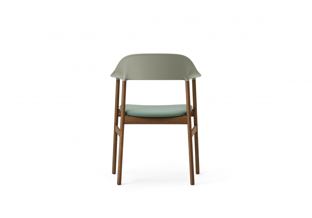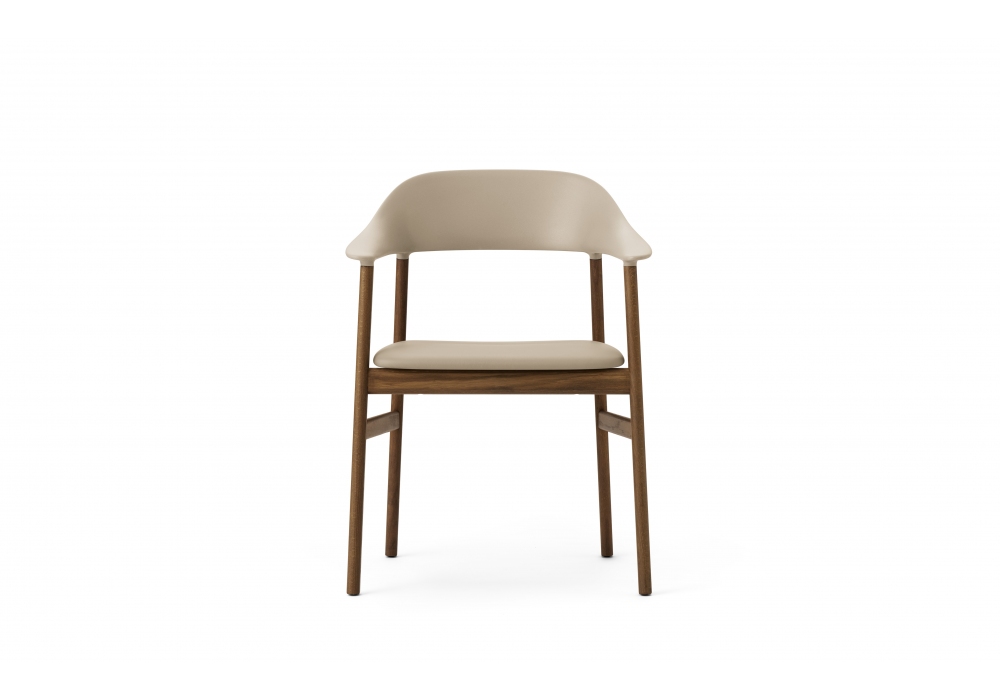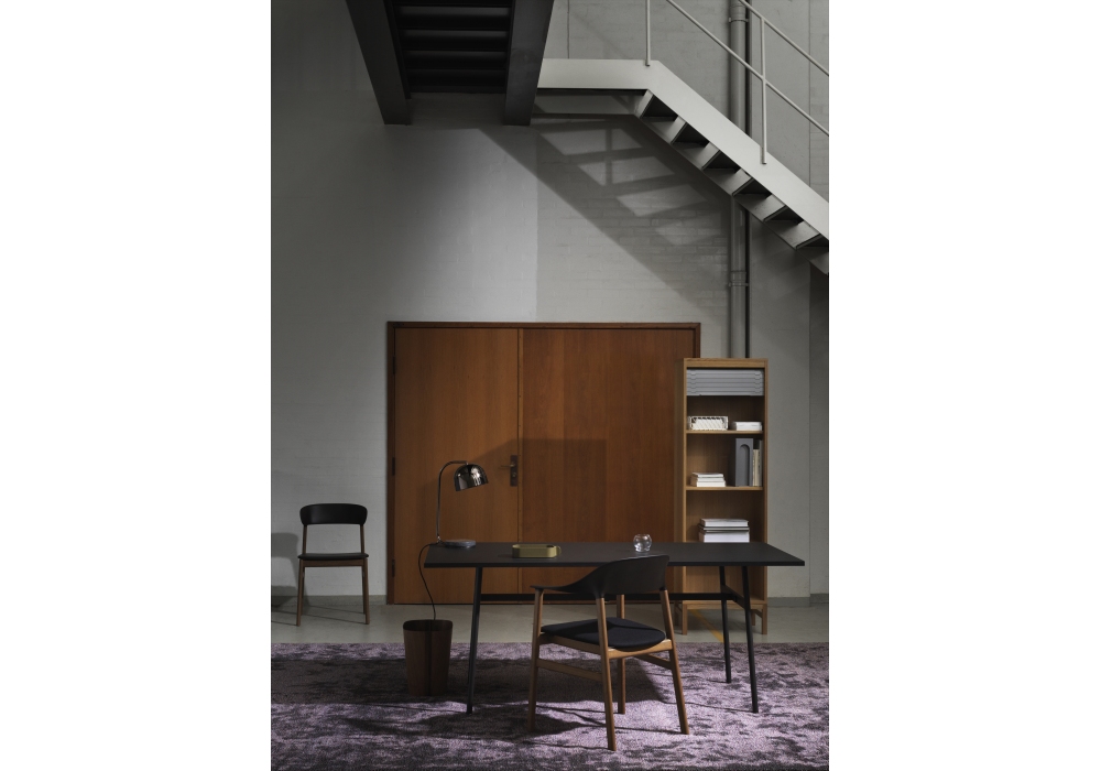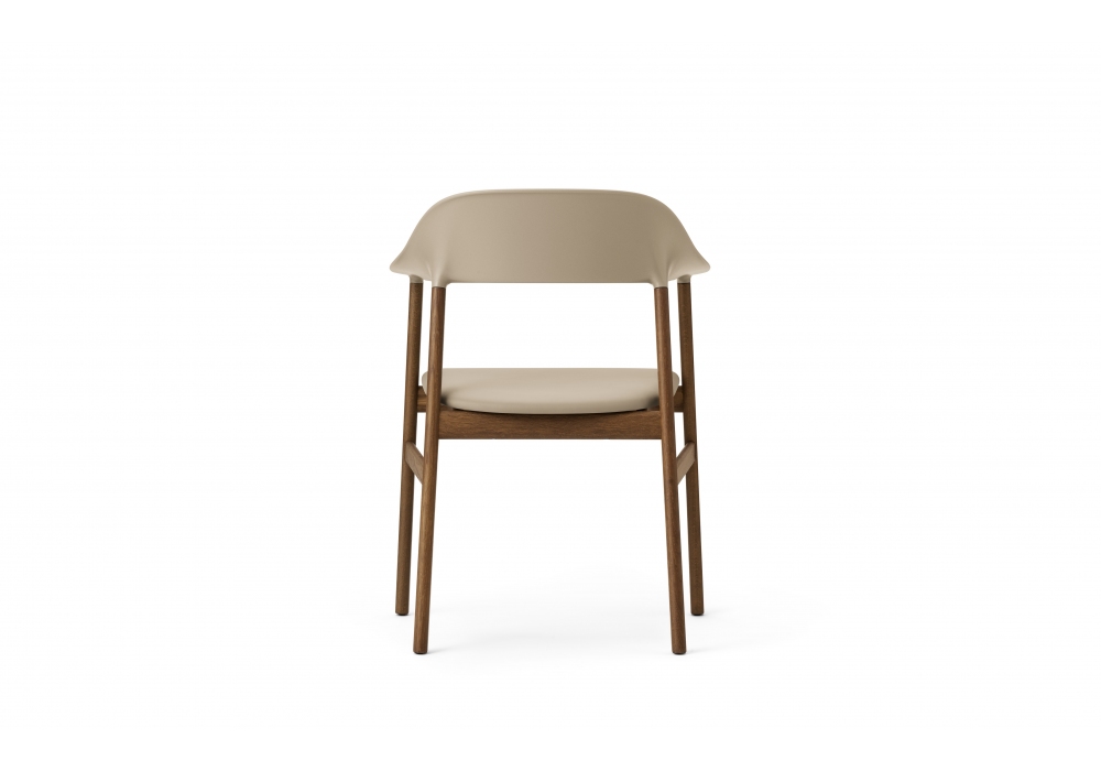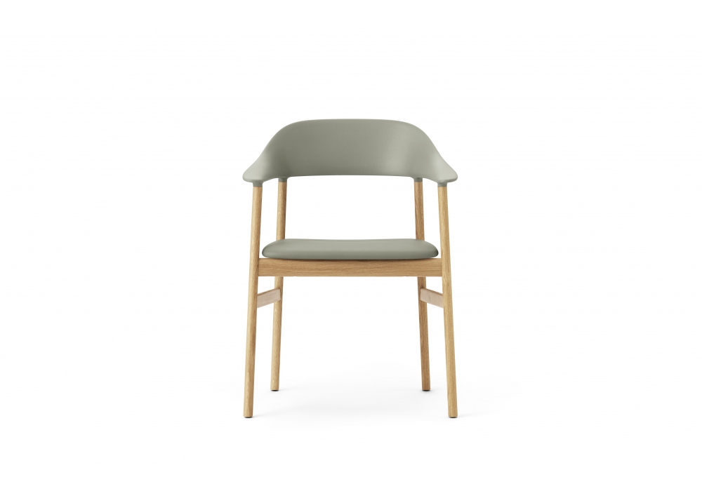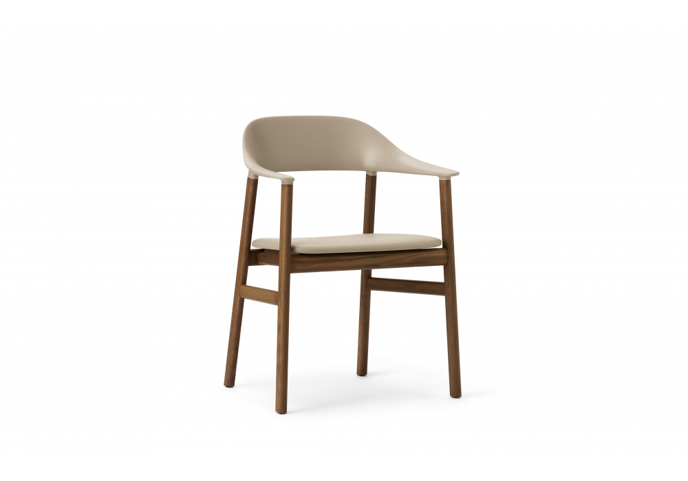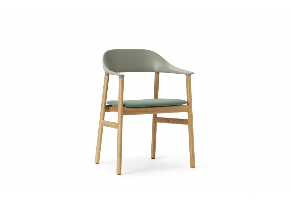 Herit, entworfen von Simon Legald für Normann Copenhagen, ist ein Sessel aus Eichenholz mit Polypropylen-Rückenlehne und Sitzfläche, die mit Leder oder Stoff in verschiedenen Ausführungen bezogen sind. Herit ist in zwei verschiedenen Versionen erhältlich, mit Struktur und Beinen in Eiche oder Räuchereiche.