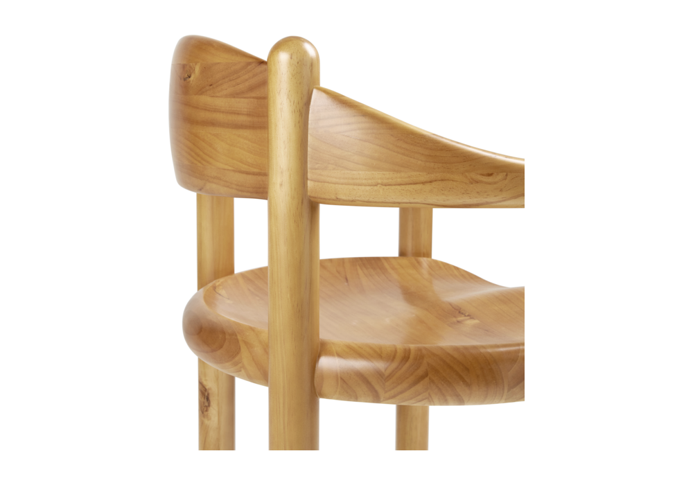 Daumiller von Rainer Daumiller für Gubi entworfen, ist ein Armstuhl aus massivem Kiefernholz.