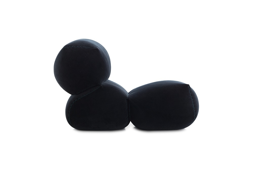 Grapy Velvet von Kensaku Oshiro für Gan entworfen, ist ein Armstuhl mit 100% Samtbezug und Polsterung aus einer Mischung aus Polystyrol und geschnittenem Schaumstoff. Verfügbar in zwei Ausführungen.