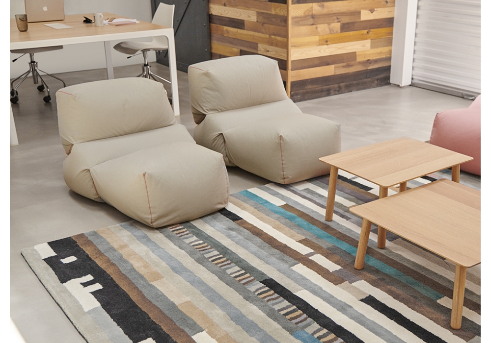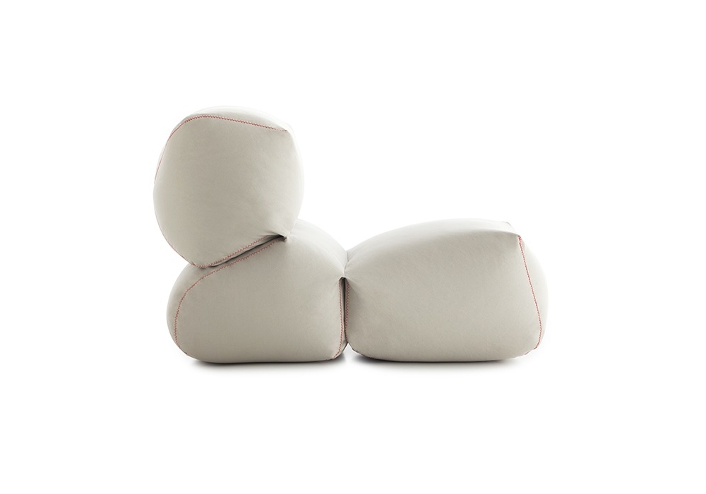 Grapy Cotton von Kensaku Oshiro für Gan entworfen, ist ein Armstuhl mit Polsterung aus 100 % Baumwolle und Polsterung aus einer Mischung aus Polystyrol und Schnittschaum. Verfügbar in drei Ausführungen.