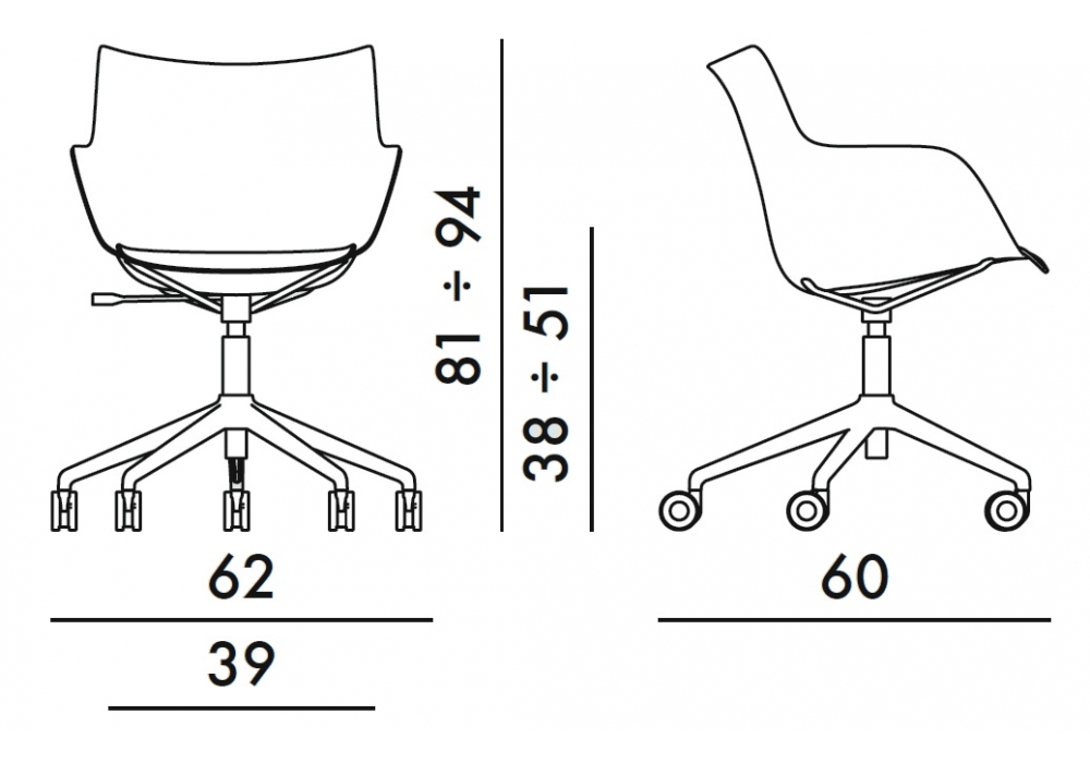 Q/Wood Kartell Drehbarer Armstuhl mit Gepolstertem Sitz