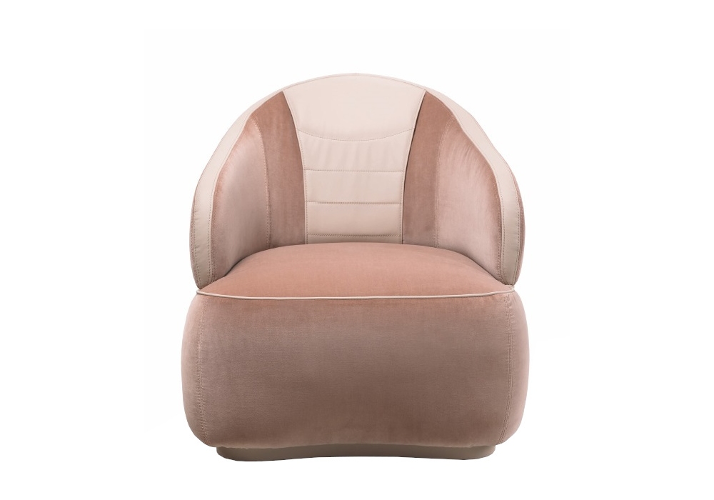 Bloom entworfen und hergestellt von Turri, ist ein Armstuhl mit mehrschichtiger und massiver Holzstruktur, gepolstert mit Polyurethanschaum mit unterschiedlicher Dichte und Bezug aus verschiedenen nicht abnehmbaren Stoffen oder Ledern. Metalldetails in hellgoldenem Finish. Basis mit Leder bezogen. Verfügbar in der Version mit Kopfstütze oder mit Gurt.