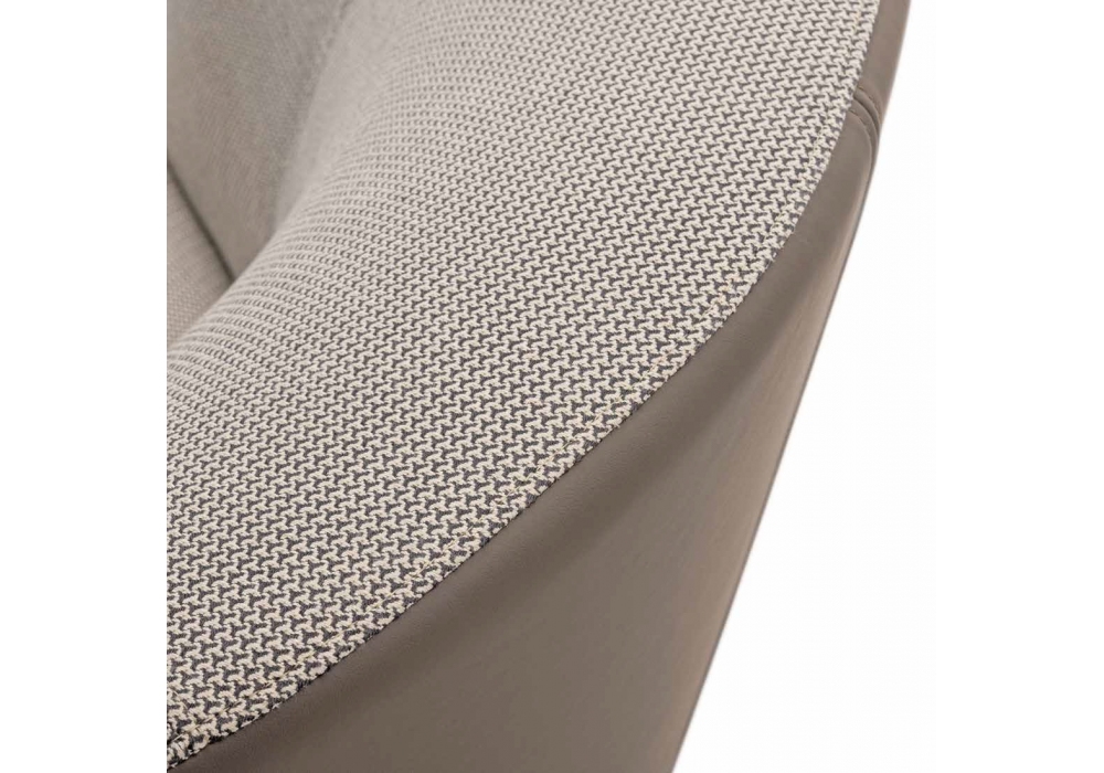 Blues von Giuseppe Viganò für Turri entworfen, ist ein Armstuhl mit Struktur aus Massivholz und Sperrholz mit Polsterung aus Polyurethanschaum mit mehreren Dichten. Schale und Polsterung in verschiedenen Ledern und Stoffen. Drehfuß aus lackiertem MDF-Holz.