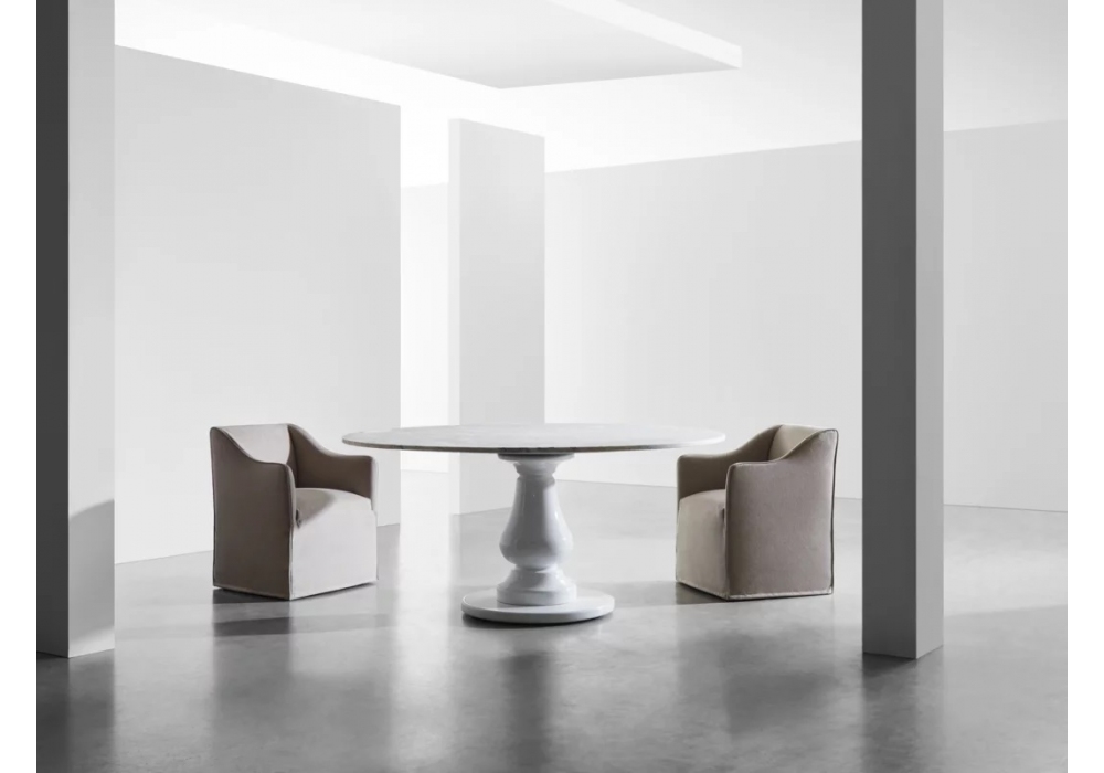 Saia von David Lopez Quincoces für Gervasoni entworfen, ist ein Armstuhl mit Polyurethan-Polsterung in verschiedenen Dichten. Abnehmbare Bezug mit Paspelierung.