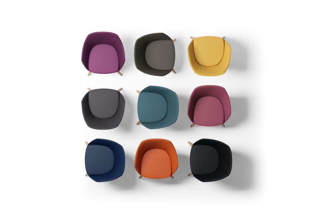 Mimì von R&D Sitlosophy für Sitlosophy entworfen, ist ein Armstuhl mit strukturierter Struktur und Armlehnen mit Stahleinlage. Polsterung aus kaltgeschäumtem, flexiblem Polyurethan mit Bezug aus Stoff, Leder oder Kunstleder.