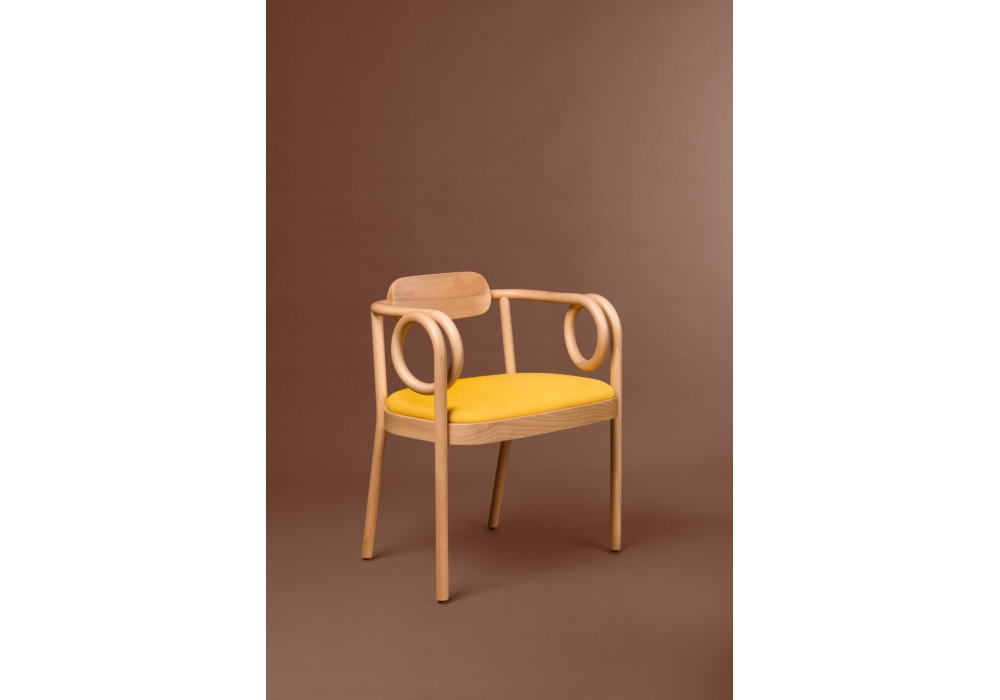 Loop Dining von India Mahdavi für Gebrüder Thonet Vienna entworfen, ist ein Sessel mit gebogener Buchenstruktur. Gepolsterter Sitz mit Stoff- oder Lederbezug, Rückenlehne aus Holz. Verfügbar in verschiedenen Ausführungen.