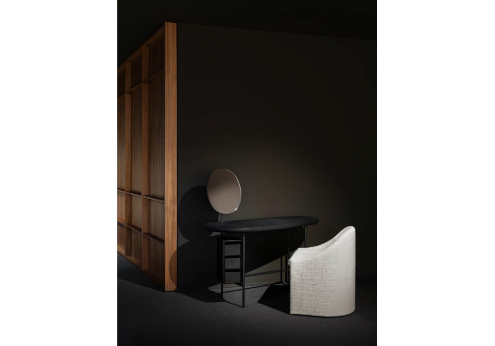 Era Easychair von David Lopez Quincoces für Living Divani entworfen, ist ein Armstuhl mit Struktur aus Stahl, grau Rotguss. Bezug aus Stoff oder Leder.