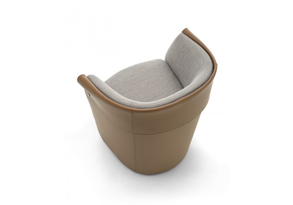 Ozzy von Patrick Norguet für Flexform entworfen, ist ein Esszimmerstuhl mit gepolsterter Struktur und einem Gestell aus Metall und geformtem Polyurethanschaum, umhüllt von einem schützenden laminierten Stoff. Die äußere Rückenlehne besteht aus Metall und ist mit Leder bezogen, verfügbar in verschiedenen Farben. Das Sitzkissen ist mit sterilisierten Gänsedaunen gefüllt. Bezug aus Stoff oder Leder. Drehbare Rollen.