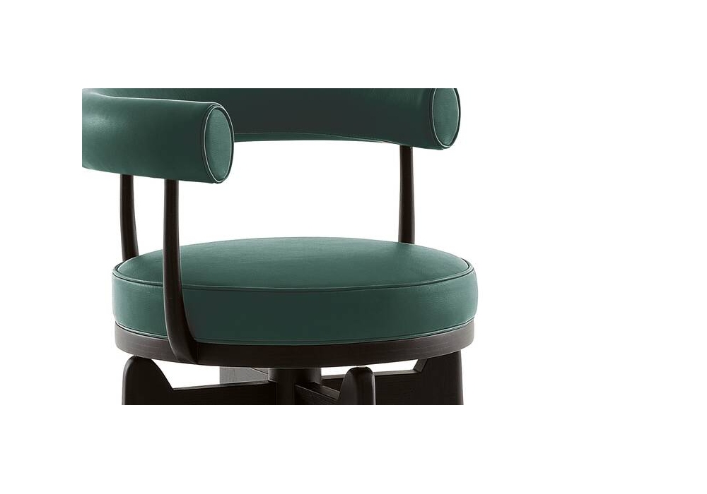 528 Indochine von Charlotte Perriand für Cassina entworfen, ist ein Sessel mit einer Massivholzbasis, einer Sitzplatte aus Pappelsperrholz und Stoff- oder Lederpolsterung.