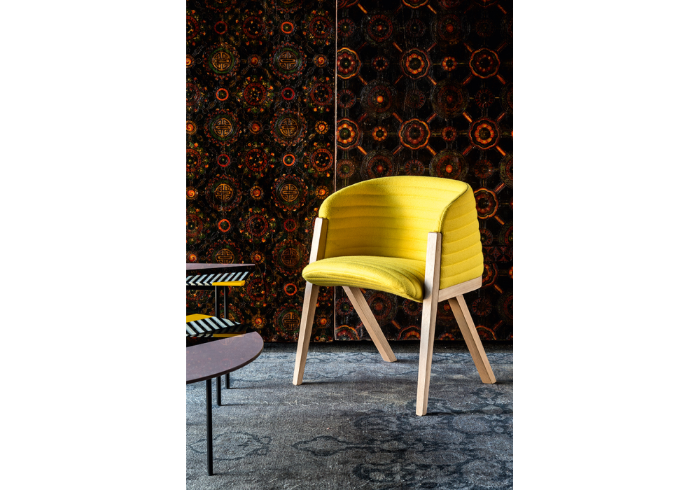 Mafalda von Patricia Urquiola für Moroso entworfen, ist ein Sessel aus kaltgeschäumtem Polyurethan mit innerer Stahlstruktur. Die Struktur besteht aus Eichenholz und die Sitzfläche ist mit verschiedenen Stoffen oder Leder bezogen.