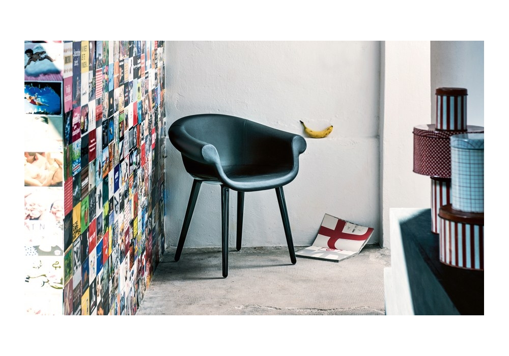 Cyborg Lord von Marcel Wanders für Magis entworfen, ist ein Sessel aus Polycarbonat, Sitz und Rückenlehne aus feuerhemmendem Polyurethanschaum, Polsterung aus Stoff oder Leder.