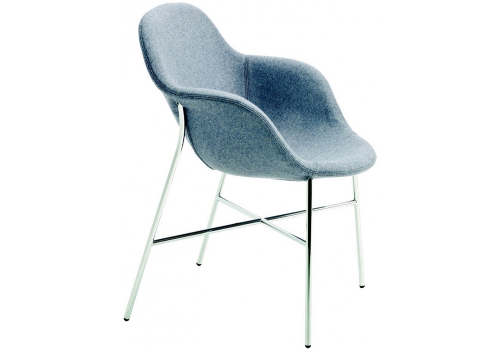 Tia Maria von Enrico Franzolini für Moroso entworfen, ist ein kleiner Sessel mit Sitzschale aus kaltgeschäumtem Polyurethan und innerer Stahlstruktur. Basis aus pulverbeschichtetem oder verchromtem Stahl. Spitzen aus Polypropylen.
