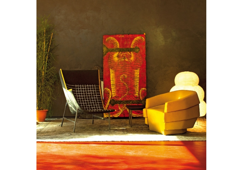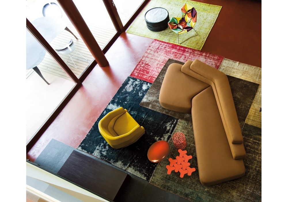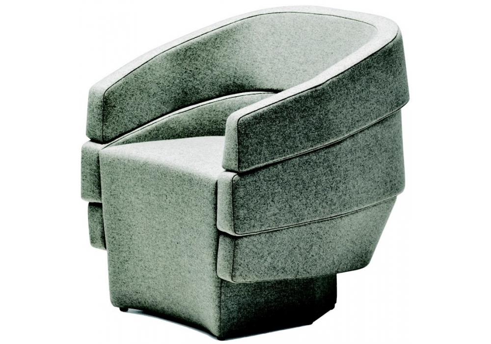 Rift von Patricia Urquiola für Moroso entworfen, ist ein kleiner Sessel aus kaltgeschäumtem Polyurethan mit innerer Stahlstruktur. Polsterung in verschiedenen Stoffen oder Leder.