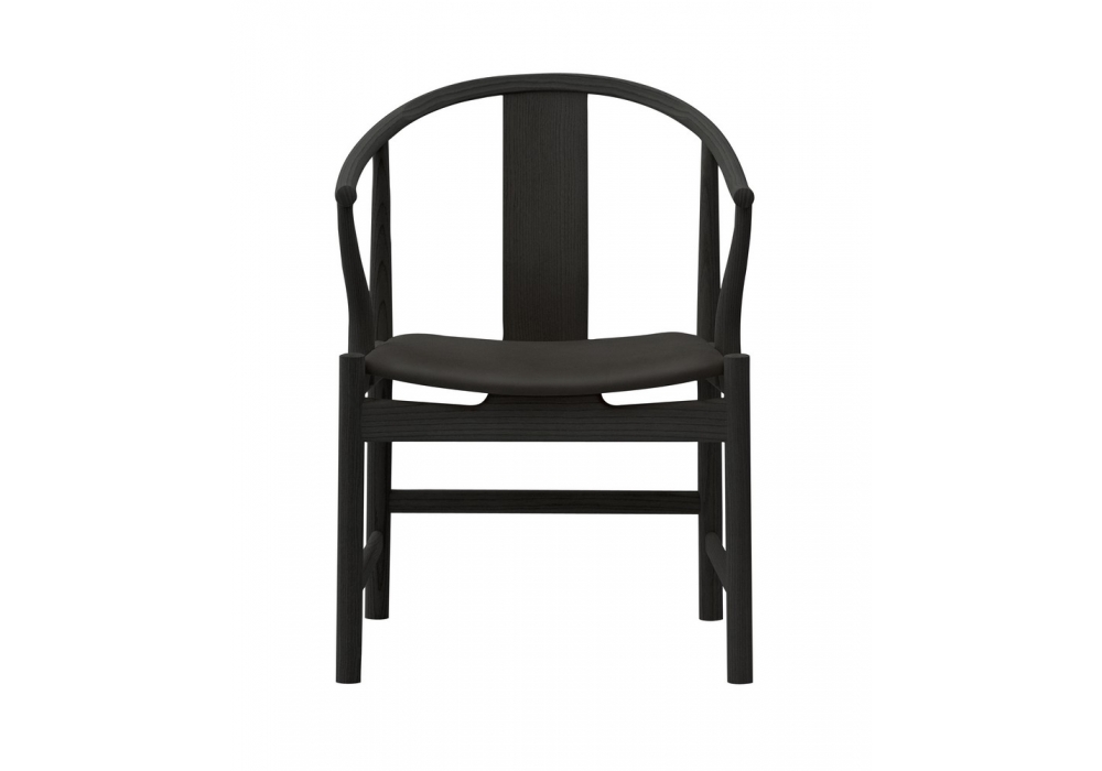 China Chair von Hans J. Wegner für Fritz Hansen entworfen, ist ein Armstuhl mit Gestell aus lackiertem massivem Kirschholz oder schwarzer Esche und Sitzkissen aus Leder. Verfügbar in mehreren Ausführungen.