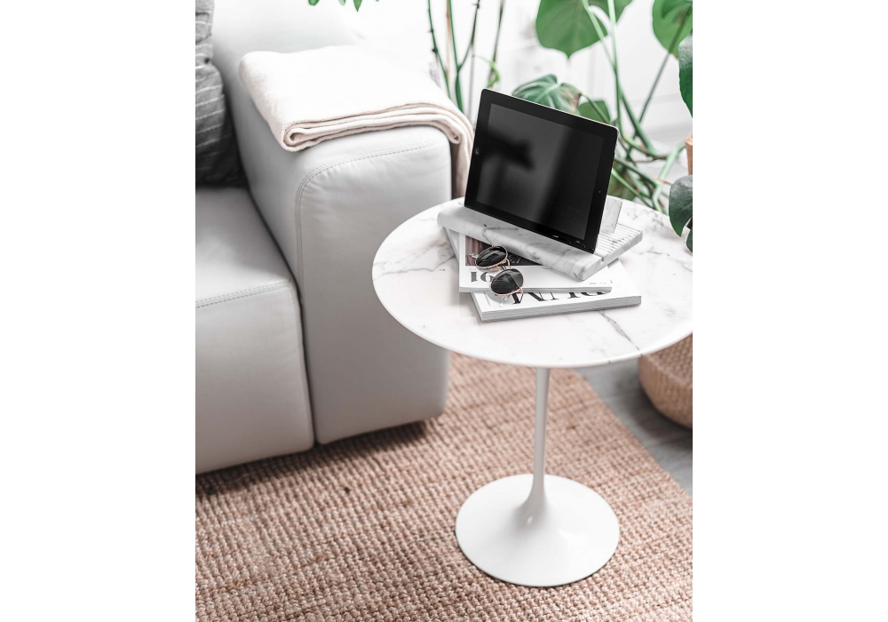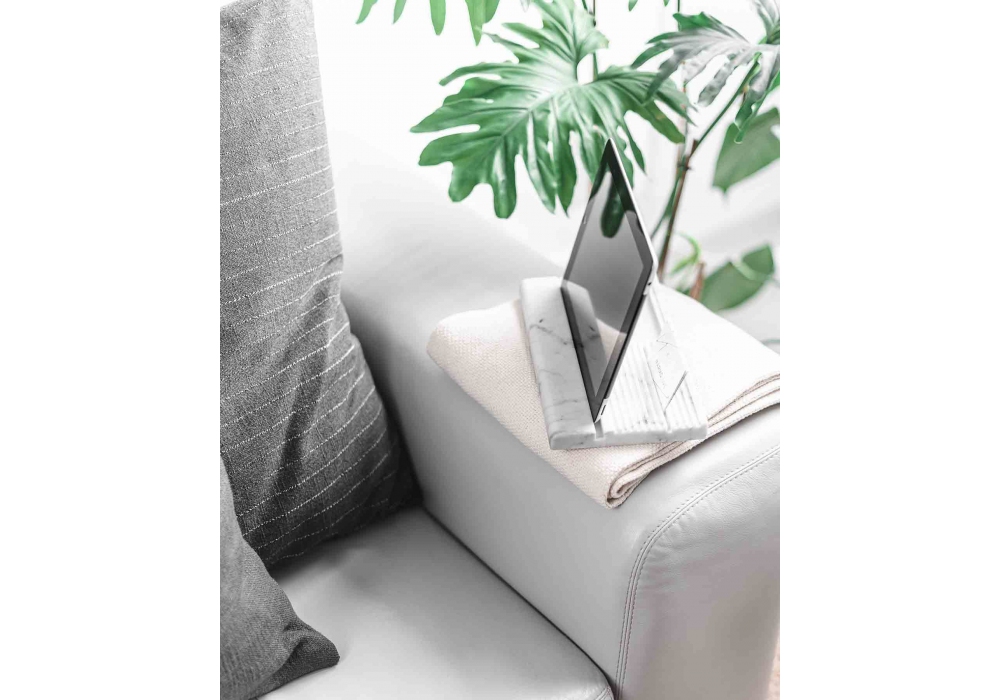 La Notte Spegnimi - iPad-Halter von MarmoLove entworfen, ist ein iPad-Halter aus geschliffenem weißem Carrara-Marmor. Erhältlich mit oder ohne Ladehalterung.