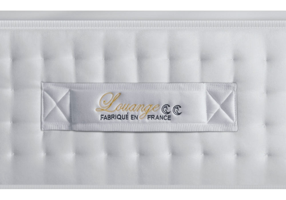 Louange von Treca Interiors Paris entworfen, ist eine Matratze. Gekennzeichnet durch die integrierte und seitliche handgefertigte Capitonnage, die eine gute Abdichtung der Polsterung aus natürlichen Materialien garantiert. Die Federung besteht aus Air Spring® Taschenfedern und 2 Lagen Air Spring® Mini-Federn, um einen angenehmen Komfort durch punktuelle progressive Unterstützung zu bieten, die sich der Morphologie des Körpers anpasst und den Zonen eine unabhängige Aufnahme ermöglicht. Das seitliche Capitonné verstärkt die Stabilität und Festigkeit der Matratze und ermöglicht es, die Polsterung im Laufe der Zeit perfekt unverändert zu halten.