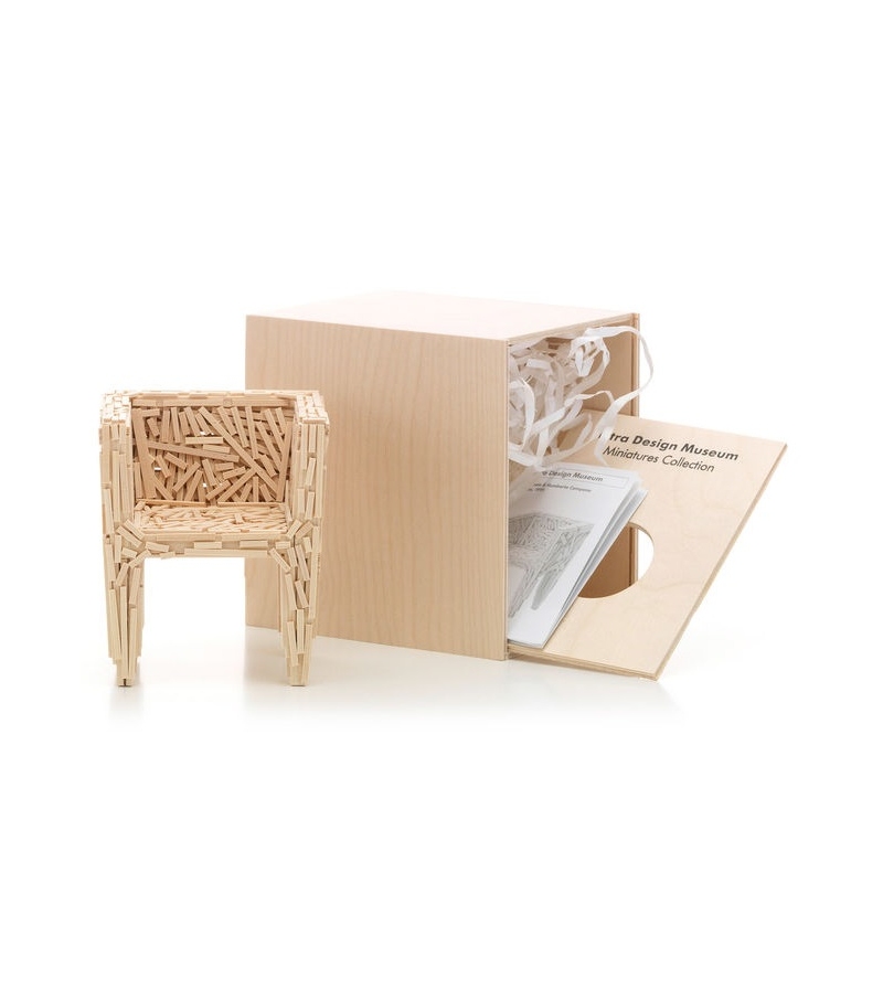 Vitra Miniature Favela, Campana: Die Sammlung des Vitra Design Museums en miniature: Die Miniatures Collection des Vitra Design Museums umfasst Schlüsselobjekte der internationalen Designgeschichte von 1850 bis heute. Jede Miniatur entspricht in Konstruktion, Material und Farbe dem Original. Die Herstellungstechniken wurden in aufwendiger Entwicklungsarbeit den Erfordernissen der Miniaturisierung angepasst. Dank dieser Originaltreue sind die Miniaturen nicht nur ein Sammlerobjekt für Möbelliebhaber, sondern auch ideales Anschauungsmaterial für Universitäten und Designschulen. Es sind bereits über 80 Modelle im Massstab 1:6 erhältlich und die Kollektion wird weiter ergänzt. Alle Modelle sind in einem Holzkistchen verpackt und werden von einer Broschüre begleitet, die den Entwurf erläutern. Der Reinerlös aus dem Verkauf der Miniaturen fliesst den Ausstellungen und Workshops des Vitra Design Museums zu.
