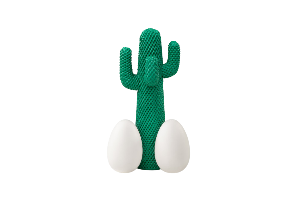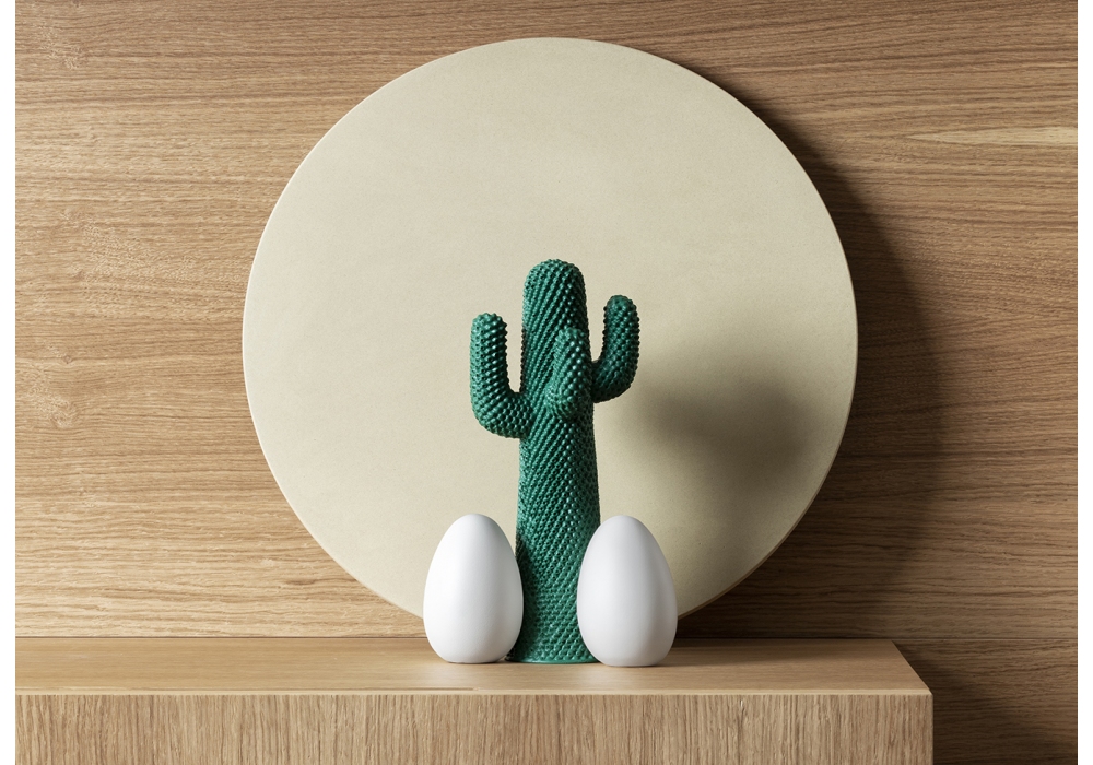 God entworfen von Drocco & Mello für Guframini, ist eine Miniatur, die den berühmten Kaktus mit La Cova-Eiern kombiniert. Die Arbeit besteht vollständig aus Polyurethan.