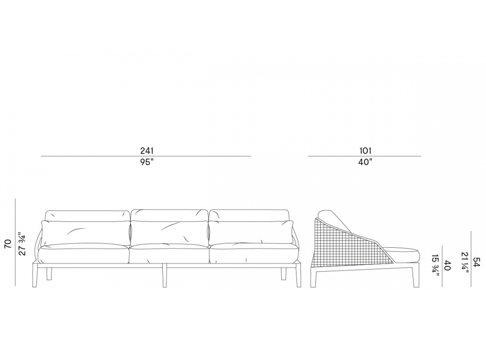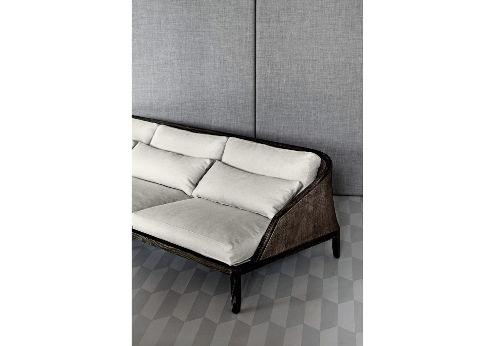 Grace von Mauro Lipparini für Potocco entworfen, ist ein Sofa mit einer Struktur aus gebürsteter massiver Esche in verschiedenen Ausführungen. Die Rückenlehne besteht aus Rohrgeflecht mit gepolsterten Kissen aus feuerhemmendem Polyurethanschaum und ist mit Leder, Stoff oder Kunstleder bezogen.