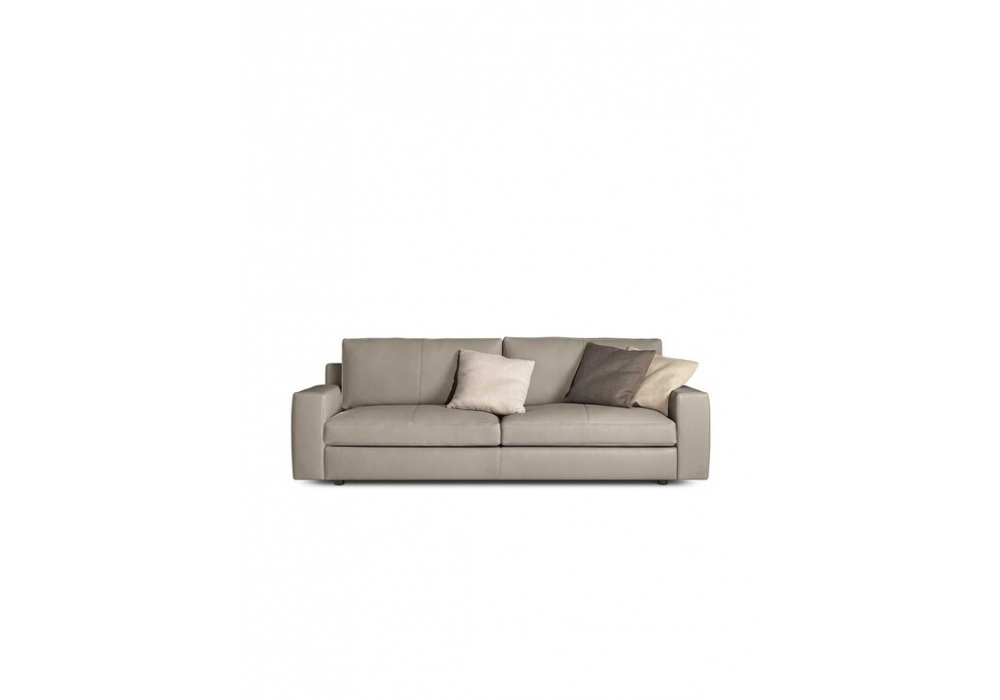 Massimosistema, entworfen von Poltrona Frau, ist ein modulares Sofa, das in verschiedenen Kombinationen erhältlich ist. Sitzstruktur aus abgelagerter Buche und Pappel mit Seiten aus Birkensperrholz und MDF-Innenverkleidung. Sitzpolsterung aus Polyurethanschaum, verstärkt mit gepresstem Filz. Die Sitz- und Rückenkissen sind mit zwei Polsterungen erhältlich: Version "Soft comfort“ mit Gänsedaunen und Polyesterklammern mit einer stabilisierenden Einlage aus Polyurethanschaum für die Sitzfläche. Die Rückenlehne ist nur mit Gänsedaunen gepolstert; die Version "Firm comfort“ ist mit Polyesterwatte und einer Einlage aus Polyurethanschaum gepolstert. Füße aus Nylon mit schwarzer Hochglanzoberfläche oder aus Stahl mit Rutheniumoberfläche.