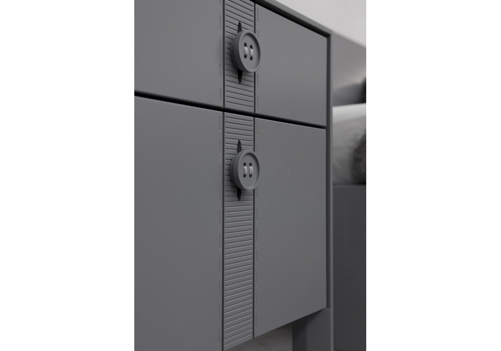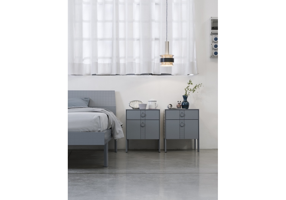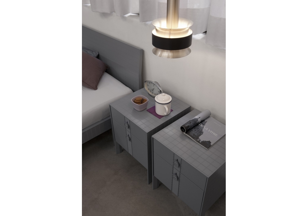 Another Day von Silvano Pierdonà für Capodopera entworfen, ist ein Nachttisch, der aus im 45°-Winkel verbundenen Elementen besteht und manuell in matt lackierter Ausführung zusammengebaut wird. Die Öffnung erfolgt per Push-Pull, oder über 3D-Knöpfe.