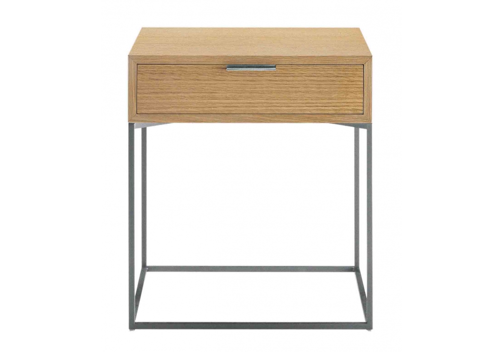 642 Oscar von Emaf Progetti für Zanotta entworfen, ist ein Nachttisch mit einer Schublade. Stahlrahmen lackierter Graphit. Griff in Graphit lackiert. Schublade aus mitteldichter Faserplatte, furniert mit natürlicher Eiche, grau gebeizt oder weiß.