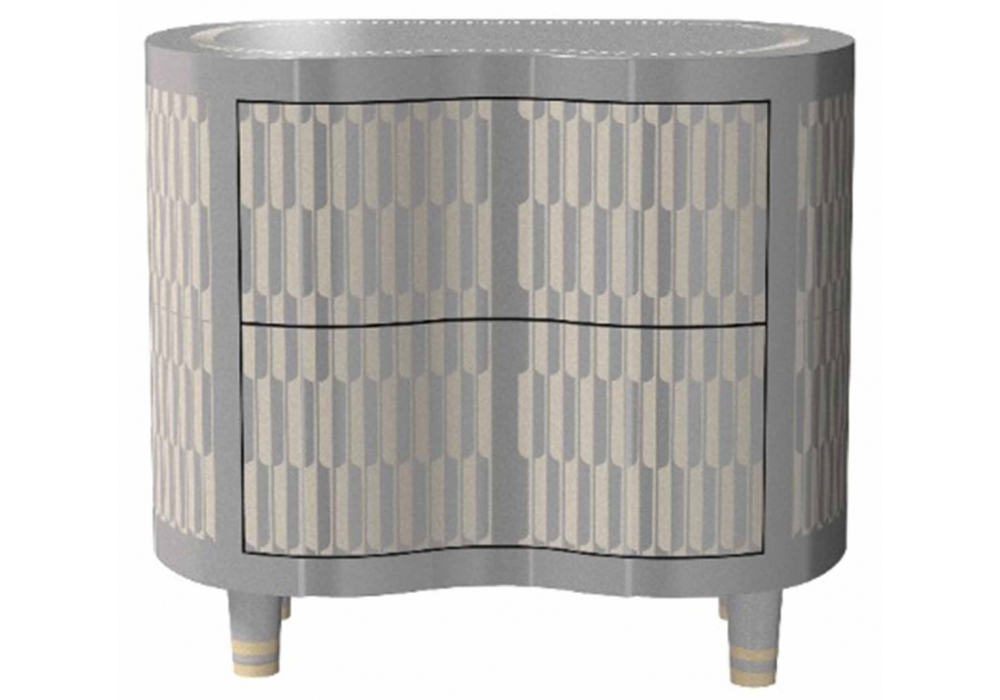 The von Matteo Cibic für Scarlet Splendor entworfen Kid ist ein Nachttisch aus MDF, Sperrholz und Teakholz mit Harzeinlage.