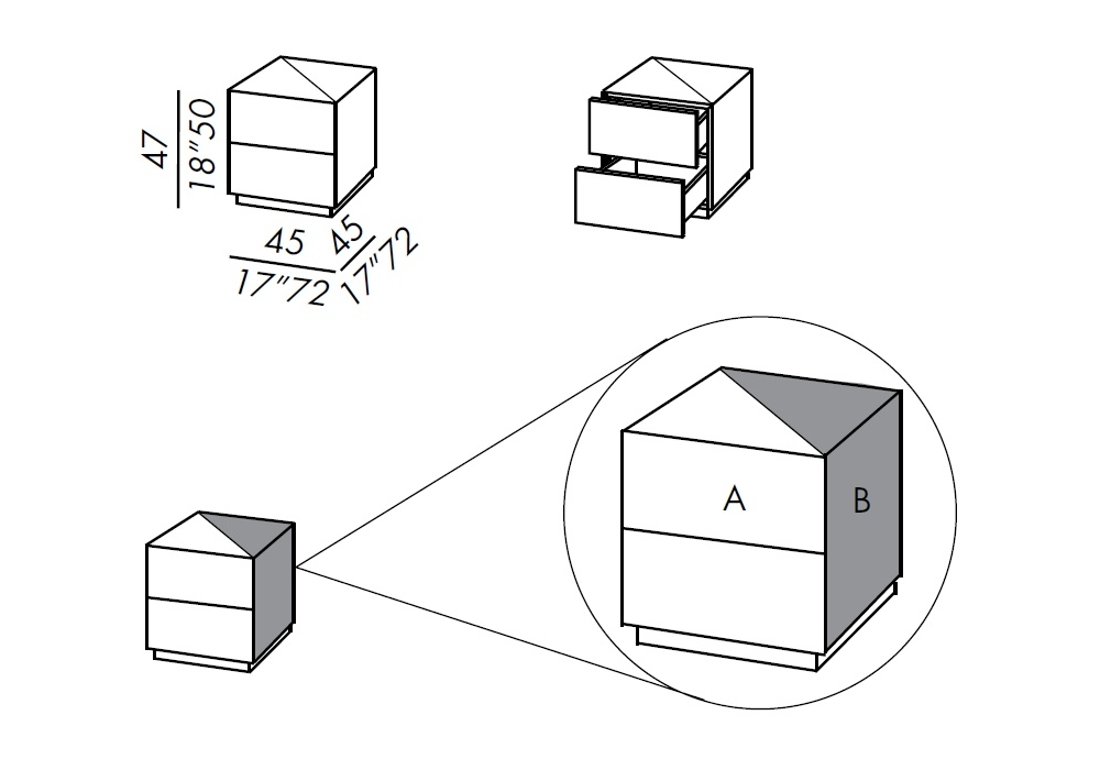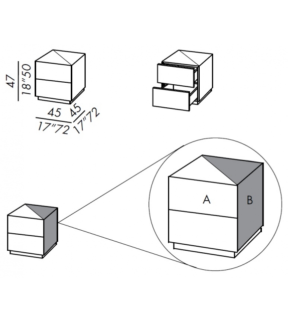 Karl von Andrea Parisio für Meridiani ist eine Nachttisch mit Schubladen und Holzgestell. Erhältlich in matt oder glänzend lackiert.