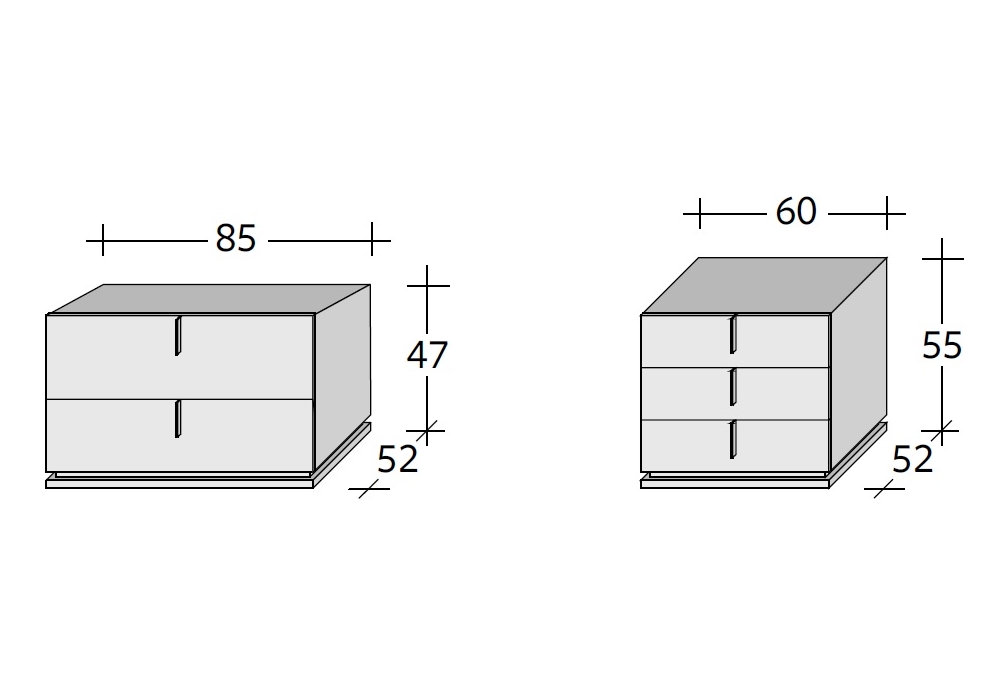 | Abmessungen | 85 x 52 x H 47 cm; 60 x 52 x H 55 cm. |