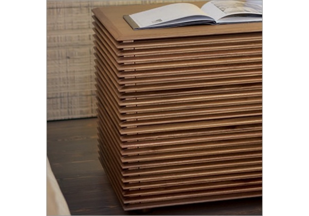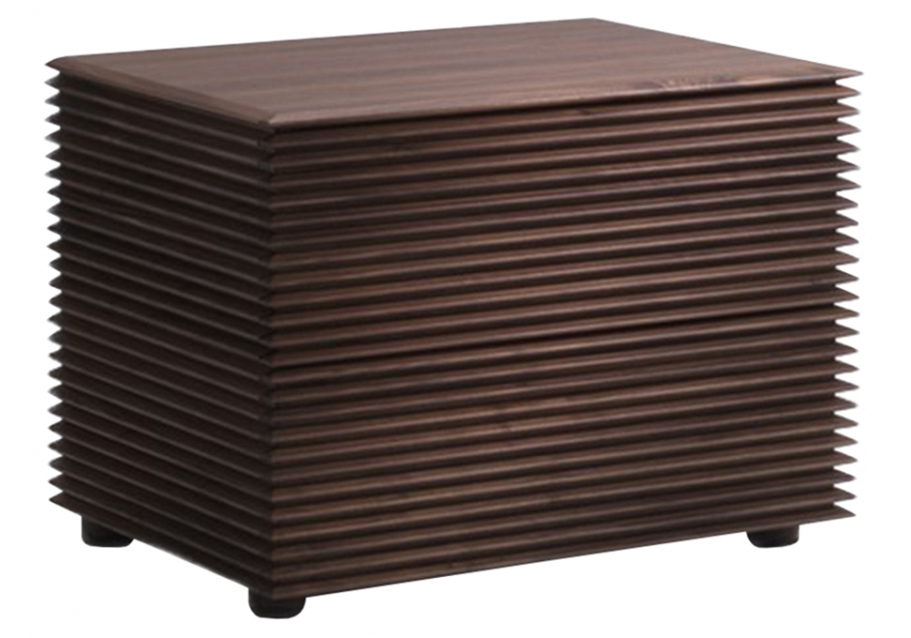 Riga 2, von T. Colzani für Porada entworfen, ist einer Nachttisch mit vier Schubladen mit Gestell aus massivem Canaletta-Nussbaum oder mattlackierten geschlossenen Poren in verschiedenen Ausführungen. Die Riga-Kollektion umfasst auch einen Kommode, ein Sideboard und einen TV-Ständer.