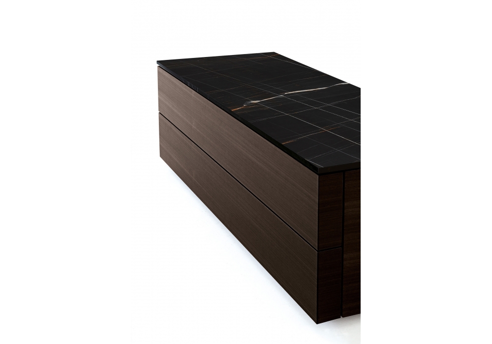 Hub von Gabriele & Oscar Buratti für Porro entworfen, ist ein Nachttisch aus Holz und Sattelleder oder Marmorplatte.