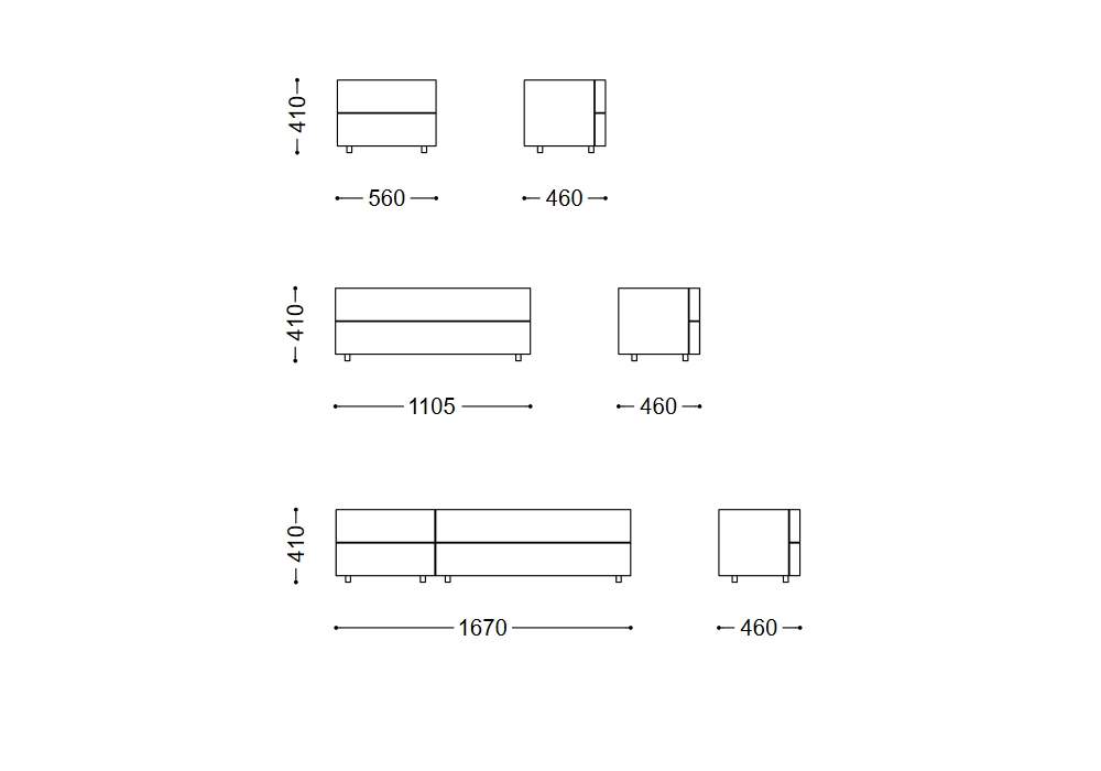 | Abmessungen | L 56 x W 46 x H 41 cm; L 110.5 x W 46 x H 41 cm |