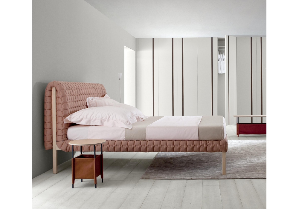 Ruché von Inga Sempé für Ligne Roset entworfen, ist ein Nachtkästchen mit Untergestell aus mattschwarz lackiertem Stahl und Außenbezug aus Kyoto-Leder. Platte aus Buche natur, verfügbar in 3 verschiedenen Ausführungen.