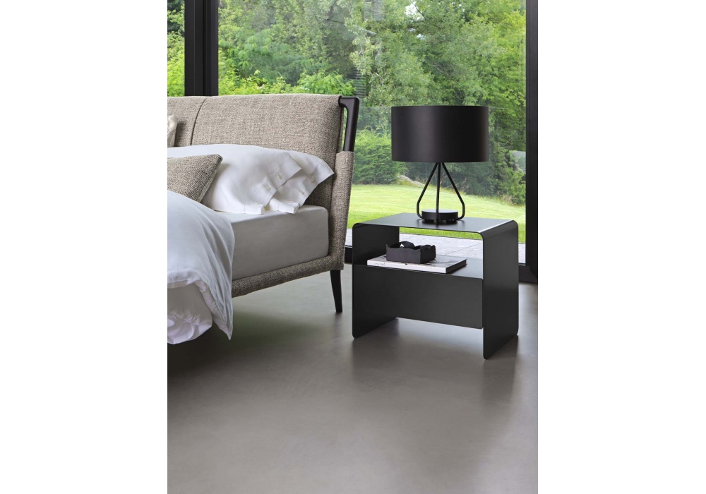 Foglio von Pinuccio Borgonovo für Flou entworfen, ist ein Nachttisch aus gebogenem Metall in verschiedenen Ausführungen. Schublade mit Frontteil in der gleichen Ausführung wie die Struktur oder Spiegel in Rauch- oder Bronzeausführung.