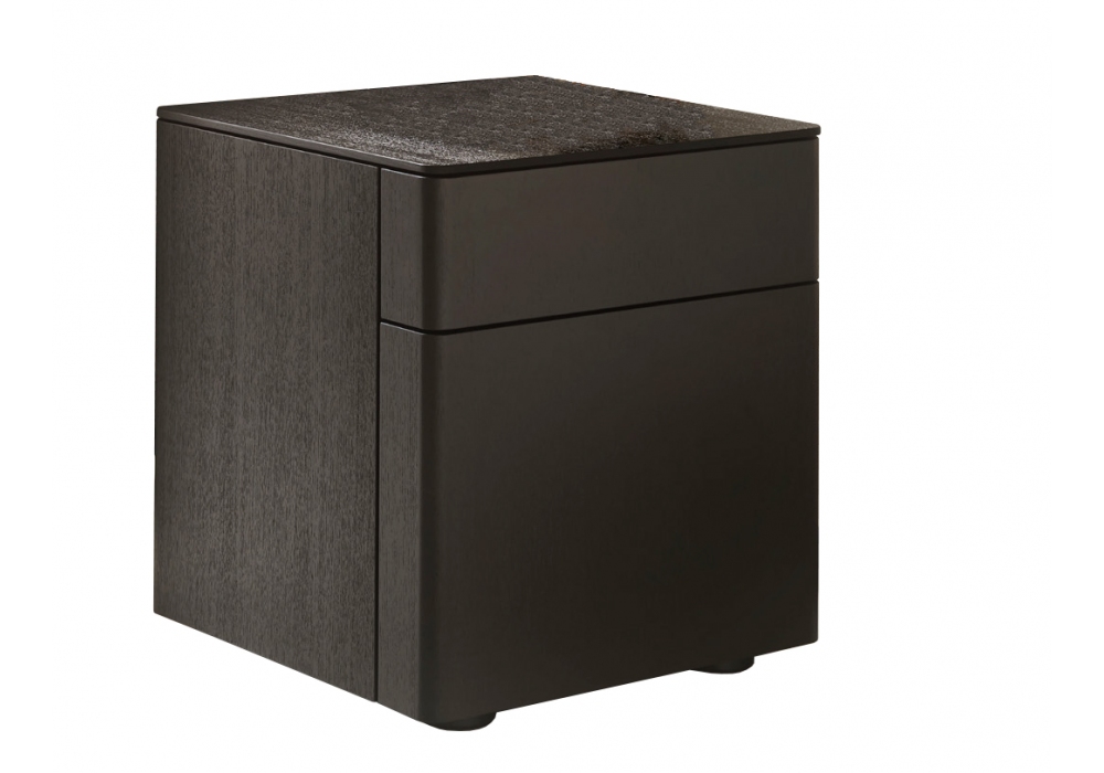 Byron, von Piero Lissoni für Porro entworfen, ist ein Nachttisch mit Eschenstruktur und Melamin Black Sugi im Inneren.