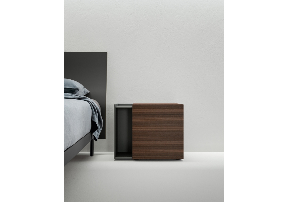 Filnox, von R&D Caccaro für Caccaro entworfen, ist ein anpassungsfähiger bodenstehender Nachttisch, Sie können die Anzahl und Höhe der Schubladen wählen, die alle mit sanft schließenden Führungen ausgestattet sind. Sie können jede Front fertigstellen, indem Sie Lack und Holz in verschiedenen Ausführungen kombinieren. Erhältlich in verschiedenen Modellen und Abmessungen.