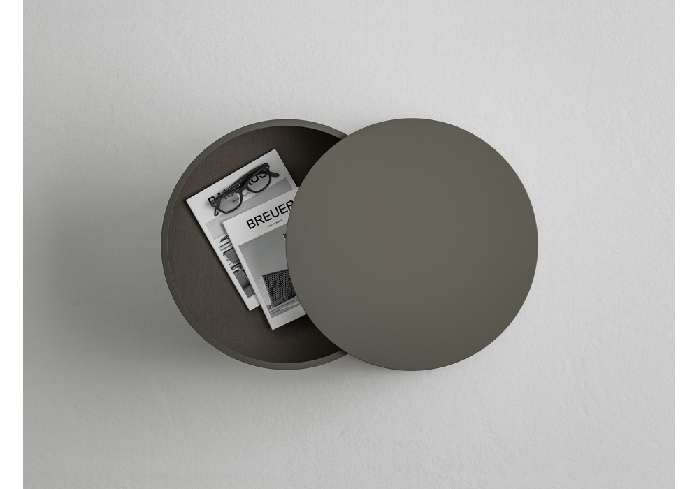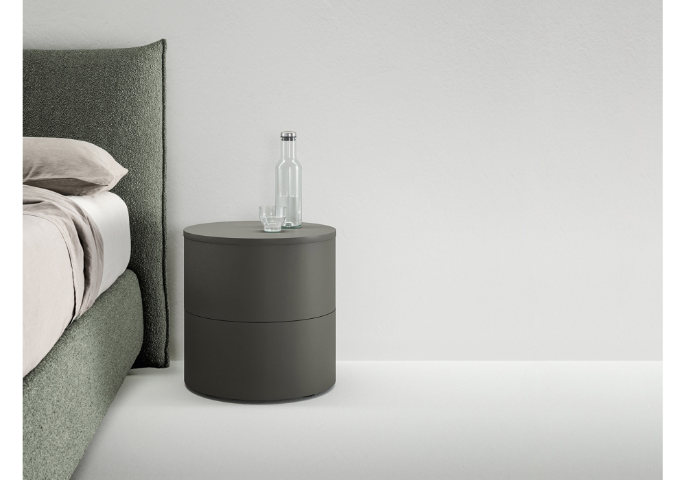 Anello, von R&D Caccaro für Caccaro entworfen, ist ein Nachttisch, der aus zwei runden Fächern besteht, die sich um ihre eigene Achse drehen. Erhältlich in verschiedenen Ausführungen.
