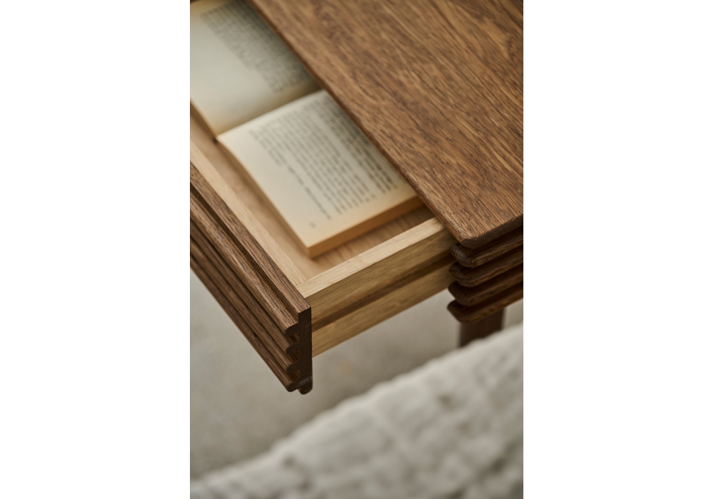 Groove diseñada por Christian Troels para Dk3 es una mesita de noche realizada en madera maciza, disponible en diferentes acabados y medidas. También está disponible en versión suspendida o con patas.
