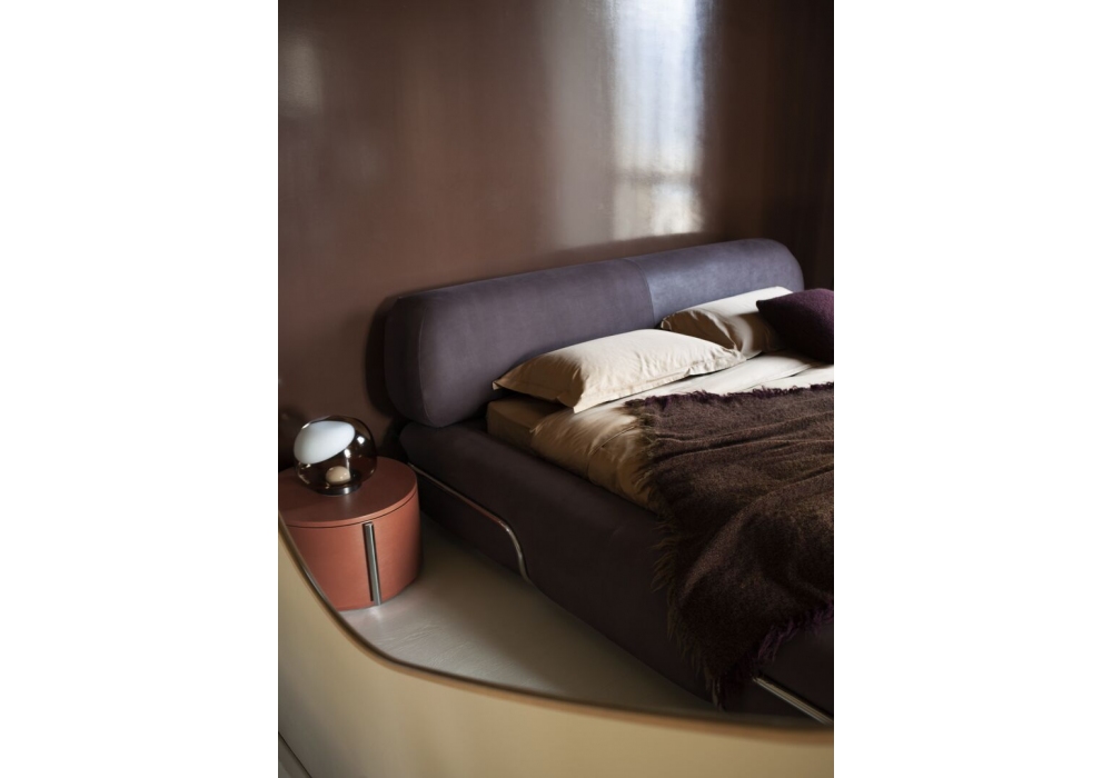 Beside von Studiopepe für Baxter entworfen, ist ein Nachttisch mit Gestell aus MDF mit Lederpolsterung. Innenstruktur aus gebogenem Pappelsperrholz. Innenschublade und Nachttisch furniert in Nussbaum Canaletto. Griff aus Metall mit Finish nach Wahl. Bezug nur in weichem Leder.