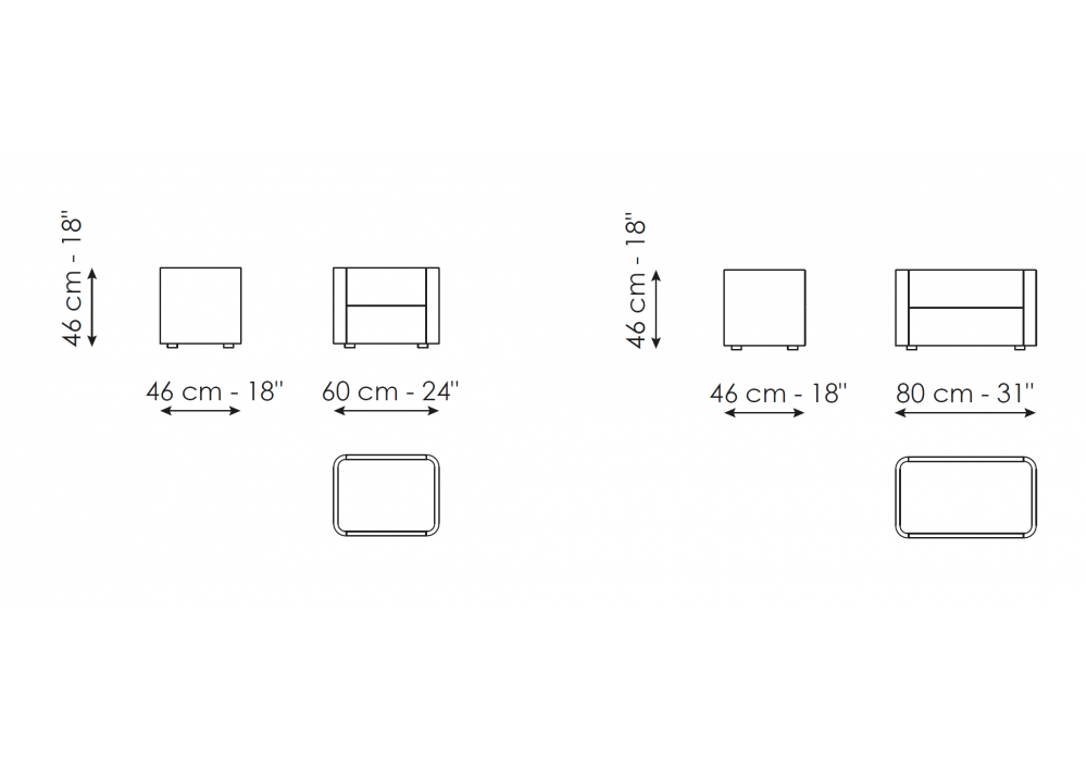 | Abmessungen | 46 x 60 x H 46 cm; 46 x 80 x H 46 cm. |