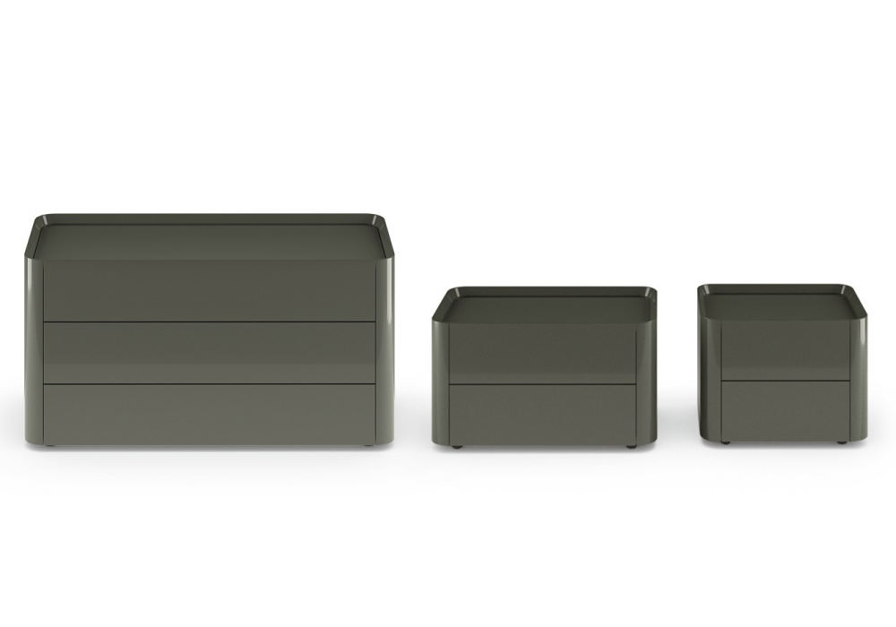 Arragan von Gabriele und Oscar Buratti für Bonaldo entworfen, ist ein Nachttisch mit lackierter Holzstruktur in glänzender oder matter Ausführung. Die Platte besteht aus Keramik oder Holz in der gleichen Farbe wie die Struktur.