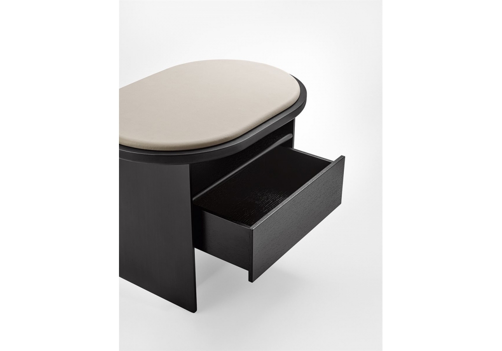 Sensei Night von Staffan Tollgard & Filippo Castellani für Gallotti&Radice entworfen, ist ein Nachttisch mit Metallstruktur und Platte aus Holz “deep black” lackiert. Schublade aus schwarz offenporig gebeizter Eschenholz. Auf der Holzplatte ruht eine 12 mm starke Glasplatte mit Halbrundschliff in der exklusiven Ausführung “Rosso Marte” oder lackiert nach Muster in der hellen Ausführung. Verfügbar auch aus 20mm Ceppo di Grè® gebürstet, Arabescato Orobico Rosso satiniert, Bianco Carrara Gioia Natur gebürstet oder Dover White satiniert Marmor. Verfügbar auch mit oberer Platte mit Leder fard bezogen.