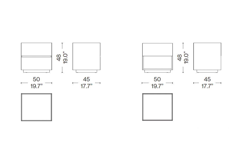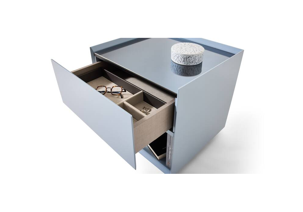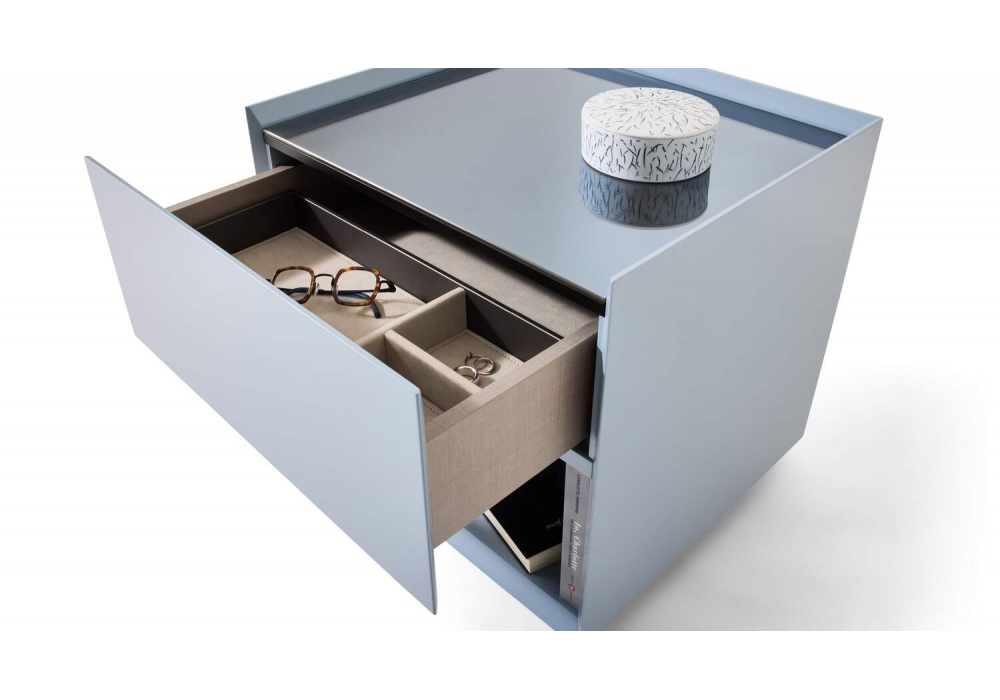 Ghost Box von Mikal Harrsen für Cassina entworfen, ist ein Nachttisch mit einer matt oder glänzend lackierten Holzstruktur und einer Glas- oder Marmorplatte. Verfügbar in verschiedenen Ausführungen und Modellen.
