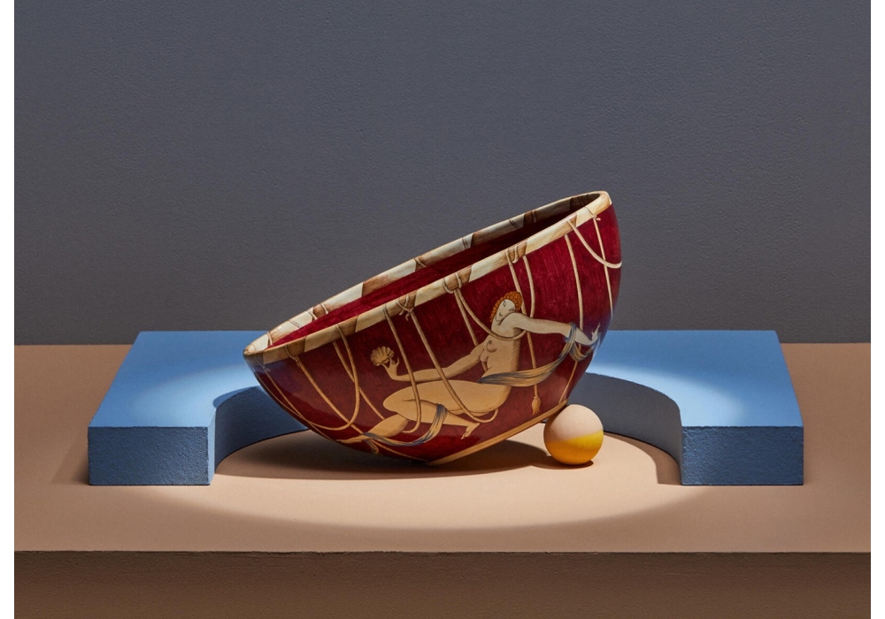 Coppa Gio Ponti, Le Mie Donne von Gio Ponti für Ginori 1735 entworfen, ist eine dekorierte Schüssel aus Majolika mit einem gelungenen Design, das eine angenehme Balance zwischen dem strengen Klassizismus der Architektur und dem flackernden Deco der Figuren schafft. Verfügbar in 2 Ausführungen.
